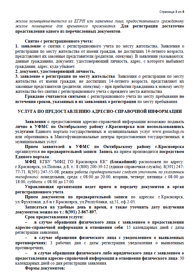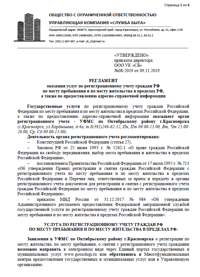 РЕГЛАМЕНТ оказания услуг по регистрационному учету граждан РФ по месту пребывания и по месту жительства в пределах РФ, а также по предоставлению адресно-справочной информации